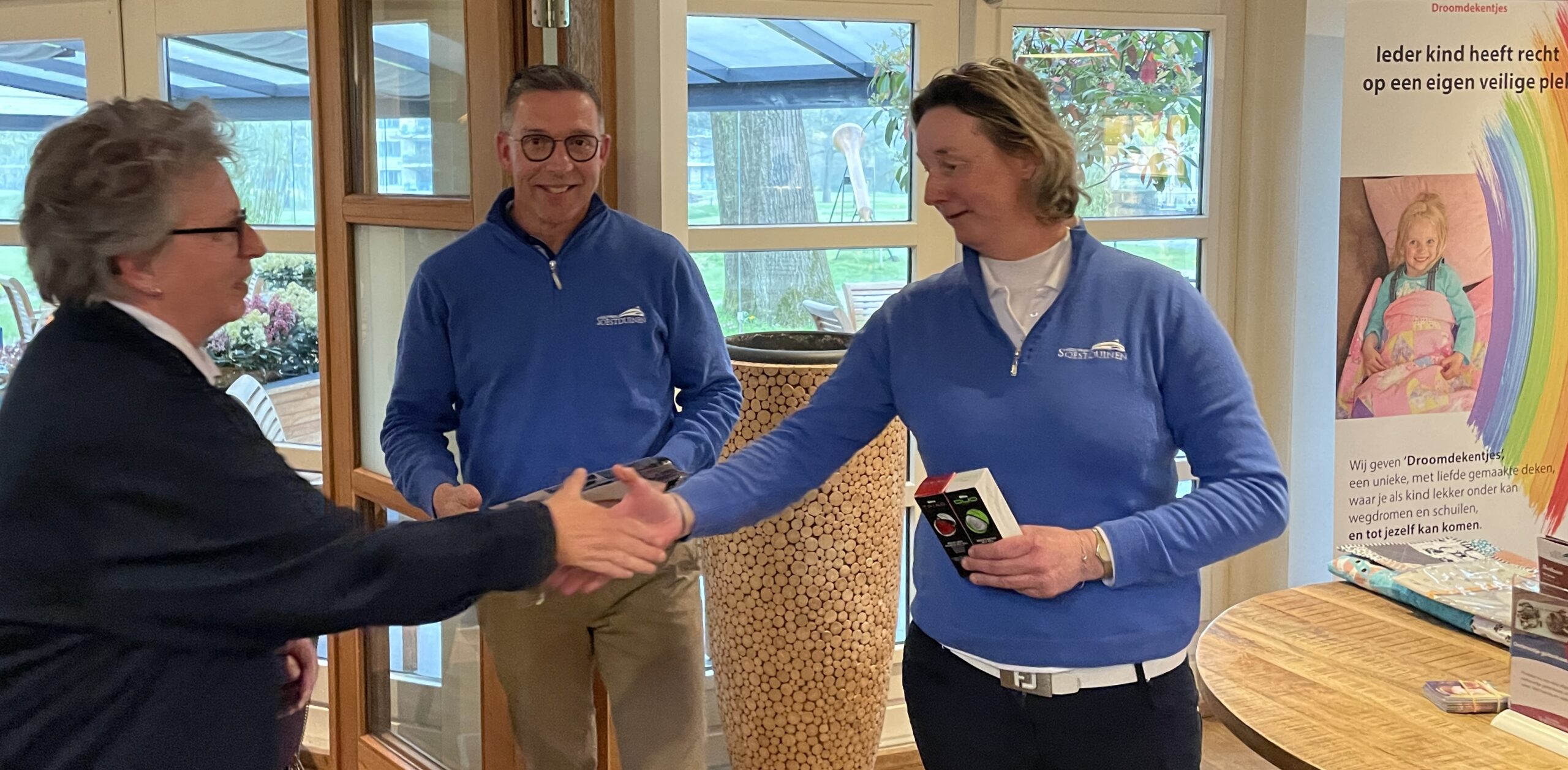 Renée van Zandvoort van de Regenboogboom speelde zelf mee en was zeer in haar nopjes met zoveel gulle donaties en enthousiaste mensen die op hun vrije zaterdagmiddag komen golfen voor het goede doel.